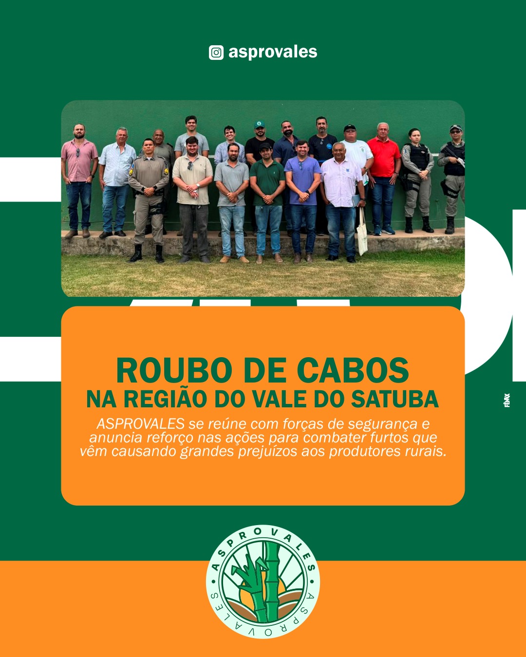 A Associação dos Plantadores Rurais do Vale do Satuba (Asprovales) recebeu, em sua sede, equipes da Polícia Militar de Atalaia e da Polícia Civil de Murici para discutir e organizar ações voltadas ao enfrentamento dos furtos registrados recentemente na região.