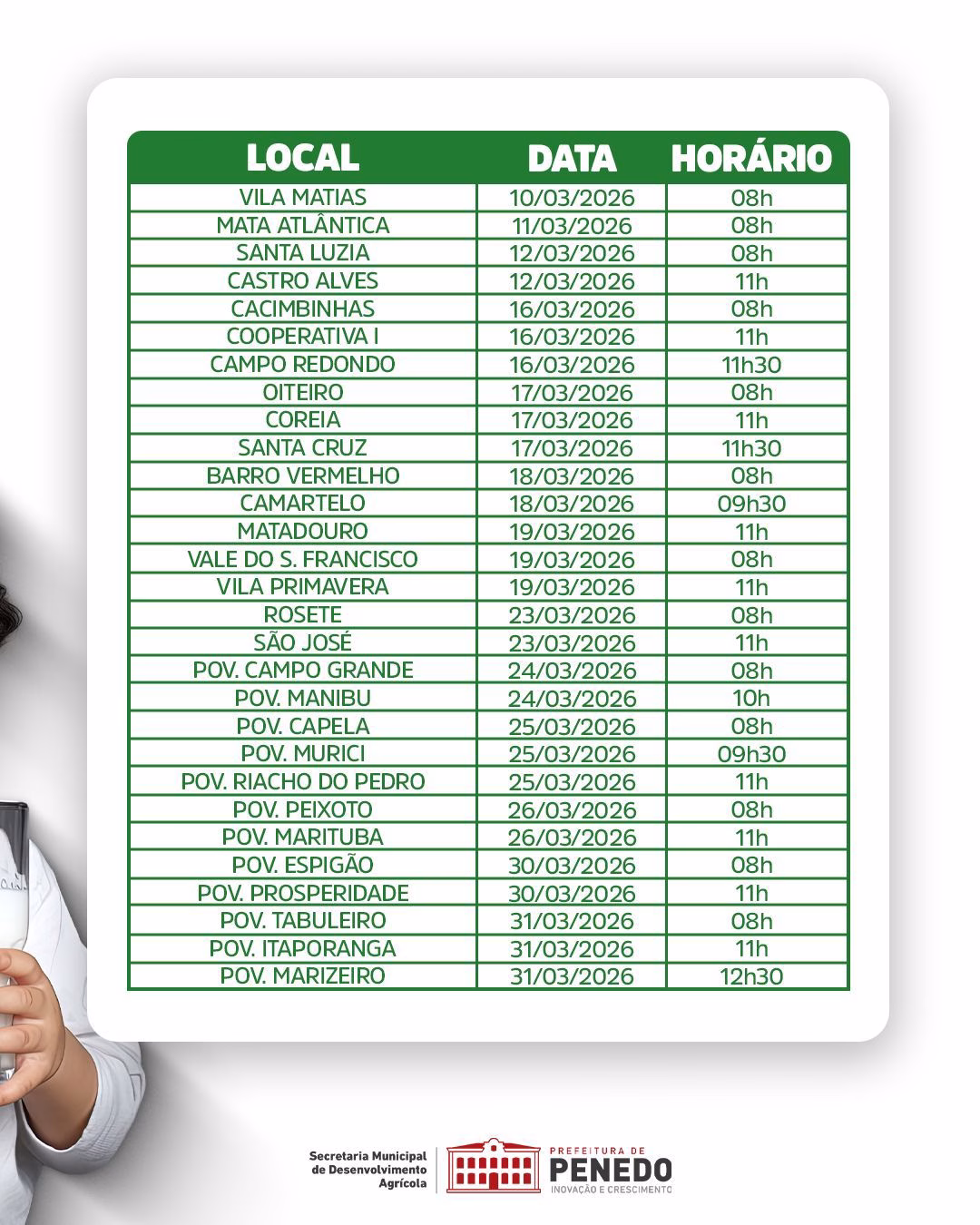 A Prefeitura de Penedo, por meio da Secretaria Municipal de Desenvolvimento Agrícola (SEMDAGRO), anuciou que os beneficiários do Programa Leite do Coração podem fazer o recadastramento a partir do dia 10 de março.