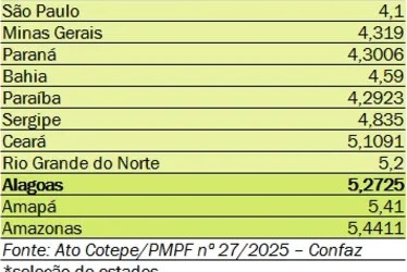 O número supera valores adotados em estados de estados com grandes extensões territoriais, maior custo logístico e até em regiões que não produzem etanol. Só dois estados terão valor de referência acima de Alagoas a partir do próximo mês: Amazonas (R$ 5,44) e Amapá (R$ 5,41).
