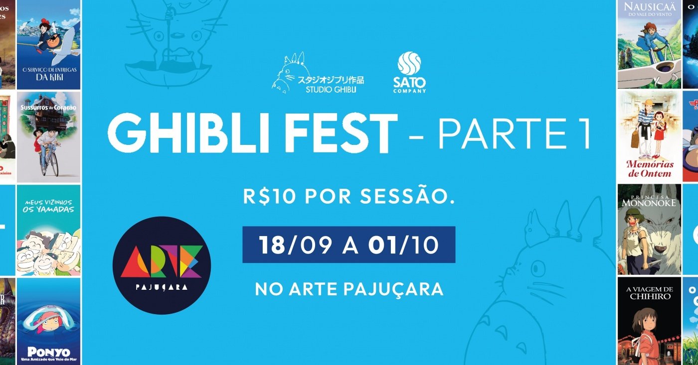 O Ghibli Fest chega ao Arte Pajuçara dividido em duas partes, exibindo ao todo 22 obras-primas do estúdio japonês. Nesta primeira etapa, serão 14 animações imperdíveis, com sessões legendadas e dubladas, para todas as idades. Nesse final de semana irá ser transmitido 3 sessões com "Memórias de Ontem", "A Viagem de Chihiro" e "O Castelo Animado", as duas ultimas sessões já se encontram esgotadas.