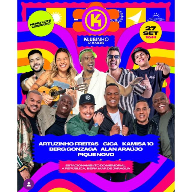 O Klubinho celebra seus 2 anos com a maior festa de pagode do ano. O evento acontece no dia 27 de setembro, a partir das 16h, no estacionamento do Memorial à República, na Beira Mar de Jaraguá.