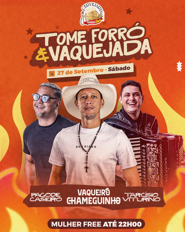 Vai ter vaquejada em Maceió! Os cantores Vaqueiro Chameguinho, Tarcísio Viturino e a banda Pagode Caseiro apresentam as suas músicas de sucesso no "Tome Forró e Vaquejada" neste fim de semana.
