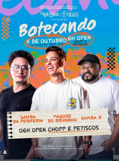 Pagode, Chopp e Petisco! É o que promete a festa Botecando, que acontece no Quintal da Hop em Maceió.