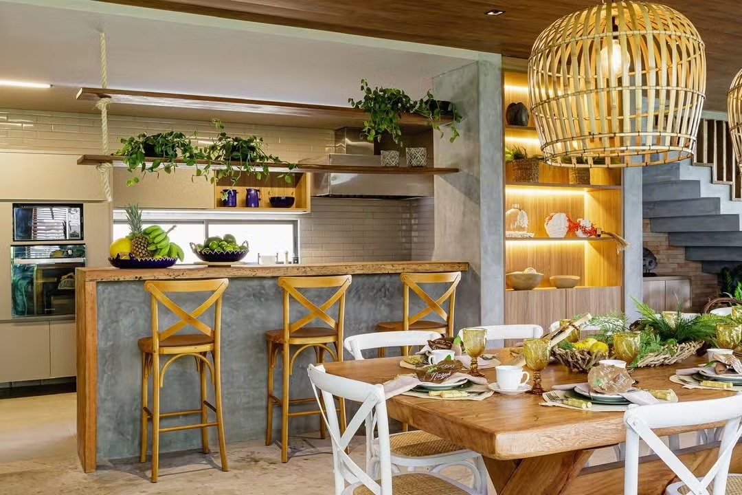 A casa comporta até 14 hóspedes e dispõe de cinco suítes, salas de estar e jantar, cozinha com equipe de apoio, espaço destinado a cuidados pessoais e área de lazer privativa. A diária no local é estimada em R$ 25 mil.