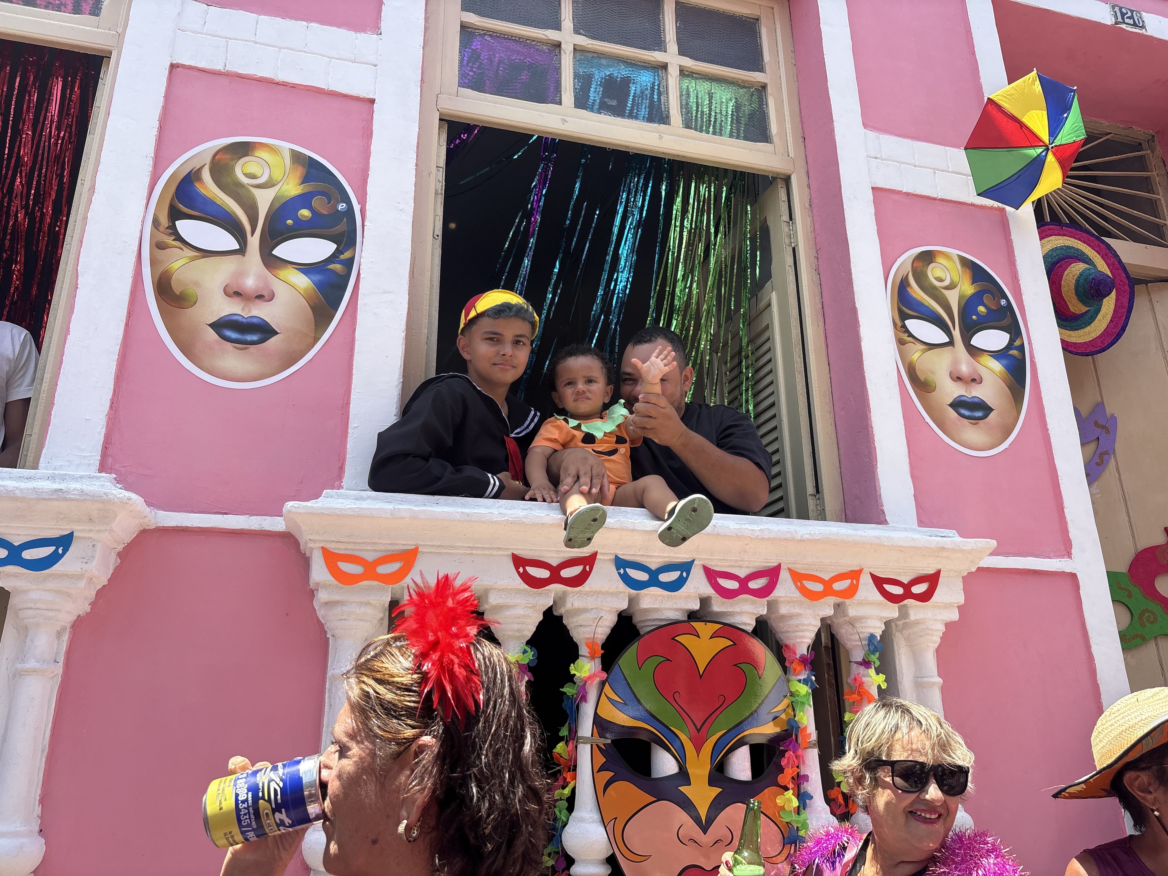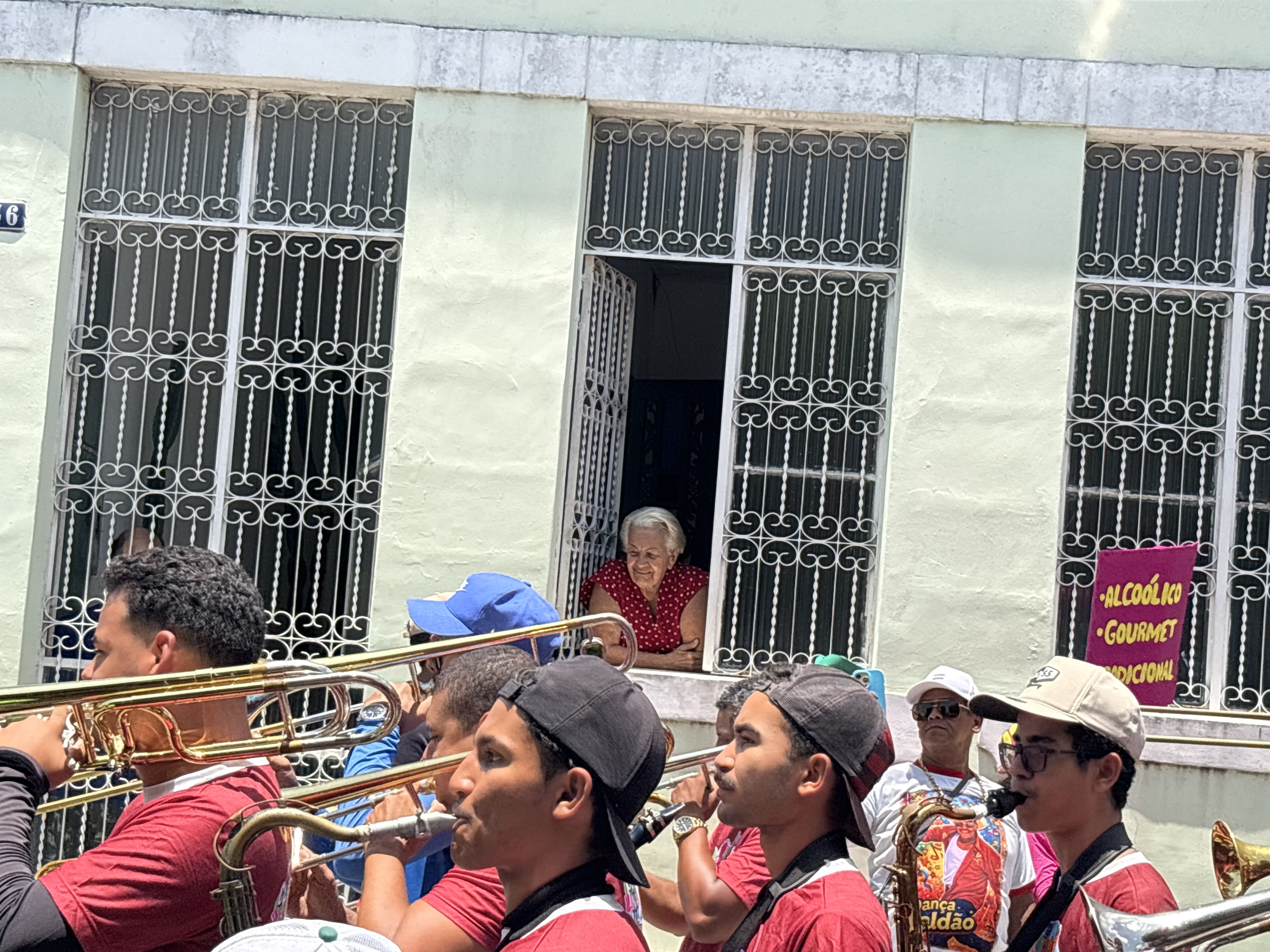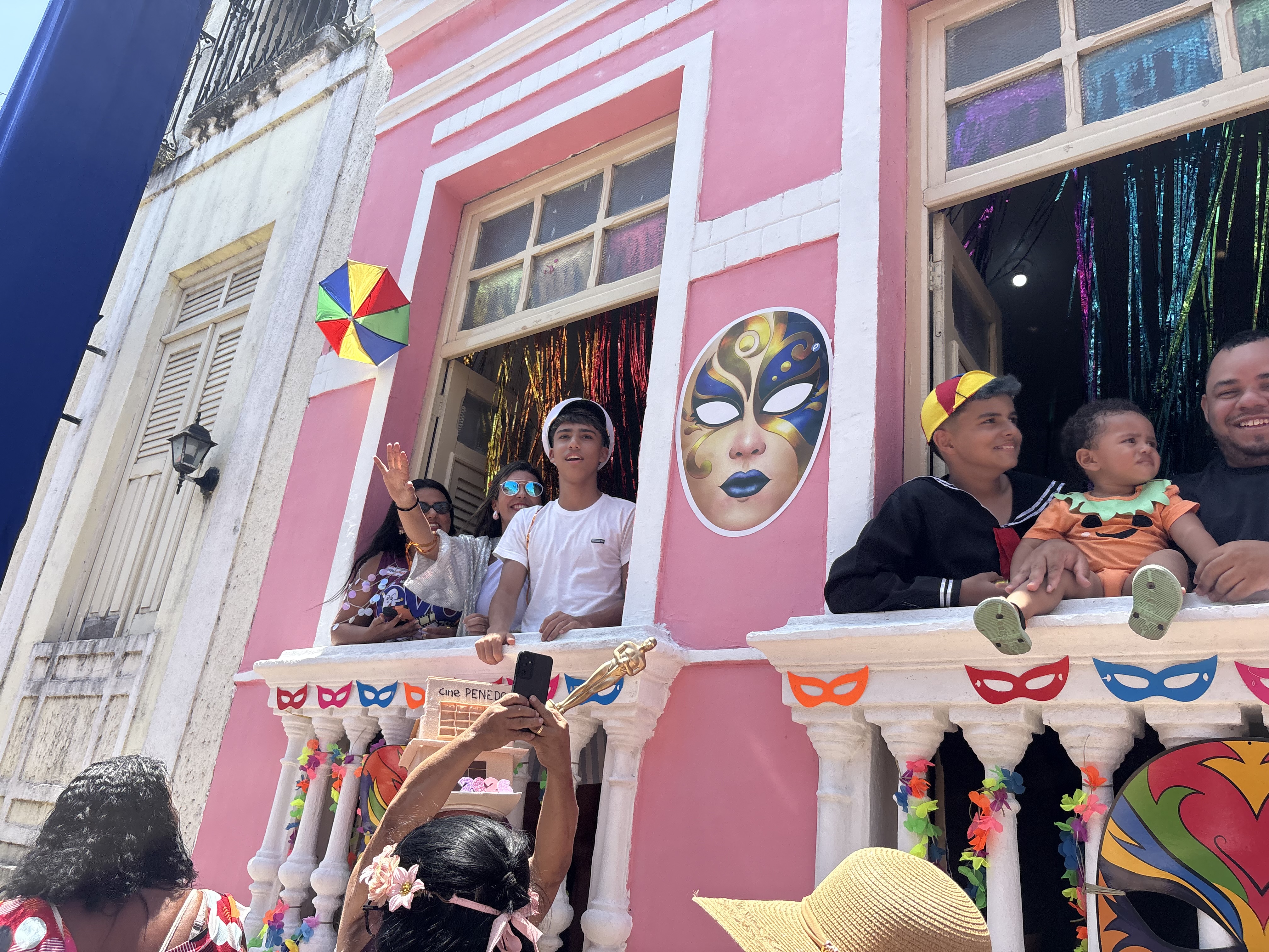 A alegria contagiante dos foliões que passavam conduzidos pelo Ovomóvel, trouxe moradores às janelas para fazer parte da festa.