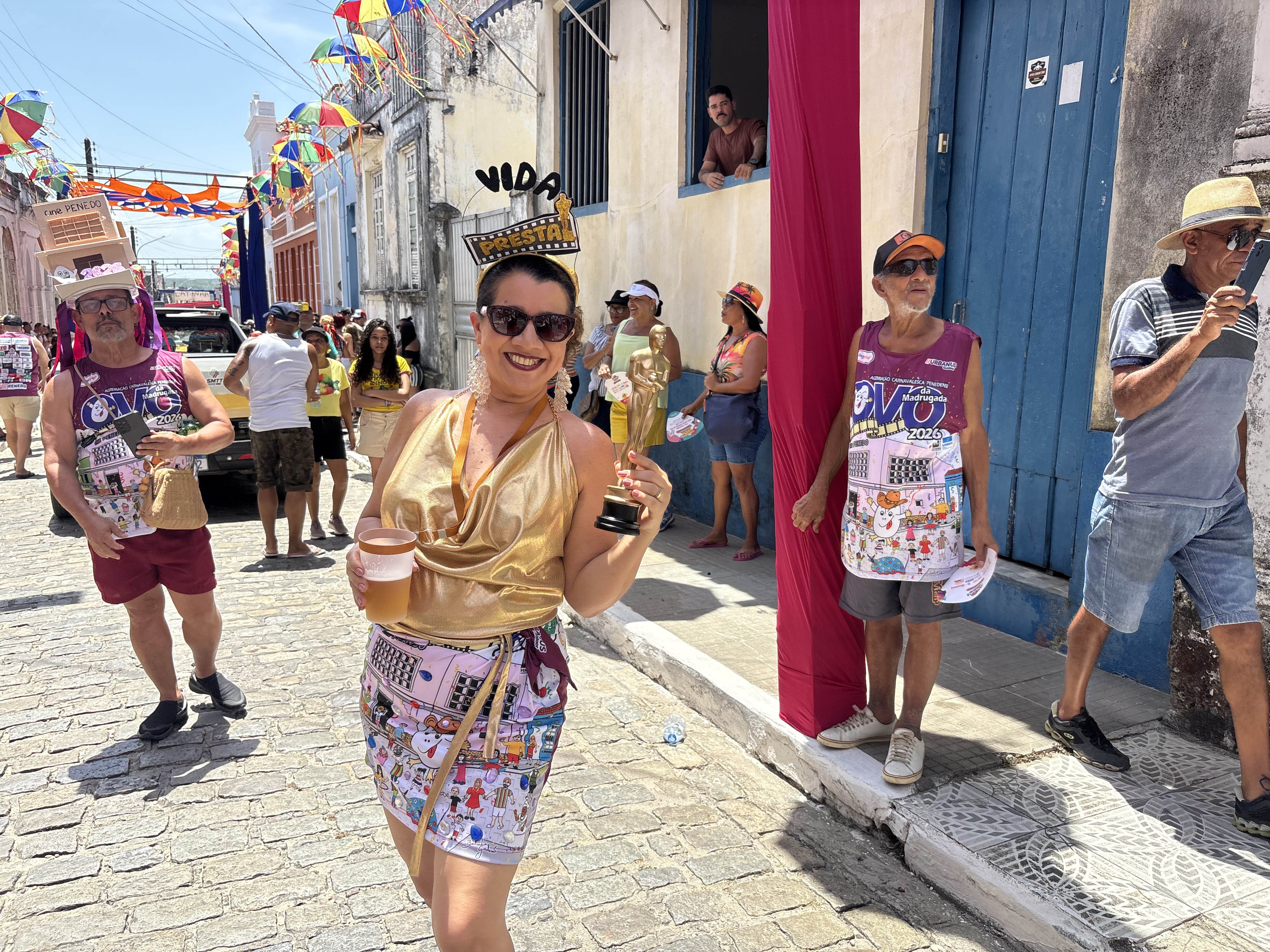 Inspirado nas recentes vitórias do cinema brasileiro com as obras “Ainda Estou Aqui” e “O Agente Secreto”, o bloco - que acontece na cidade sede do primeiro Festival de Cinema Brasileiro - reuniu referências não apenas da cultura popular brasileira como de nomes e rostos que fizeram história na sétima arte. A criatividade, nostalgia e contemporaneidade se fizeram presentes em um espaço só.