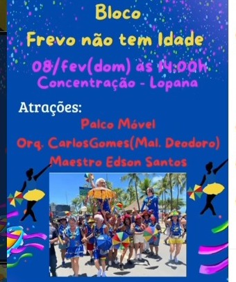 O bloco que reúne a melhor idade se concentrará no domingo (8), a partir das 14h, em frente ao Lopana, na Ponta Verde.