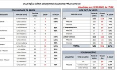 Segundo o Bolentim, 73% dos 40 leitos de UTI do Hospital da Mulher já estão ocupados. No Hospital Veredas são 20 UTIs para Covid-19 e ocupação de 85%. No Sanatório, 10 UTIS e 90% de ocupação. No Hospital Universitário (HU), são 14 leitos e 13 (93%) ocupados.