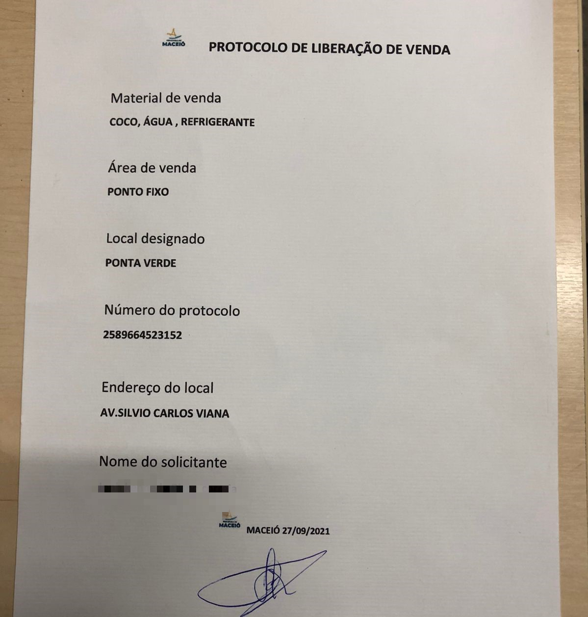 O documento falso estava sendo vendido por R$ 200 e “autorizava” a comercialização de água mineral, coco e refrigerante, indicando o bairro e a rua onde o ambulante poderia trabalhar.
