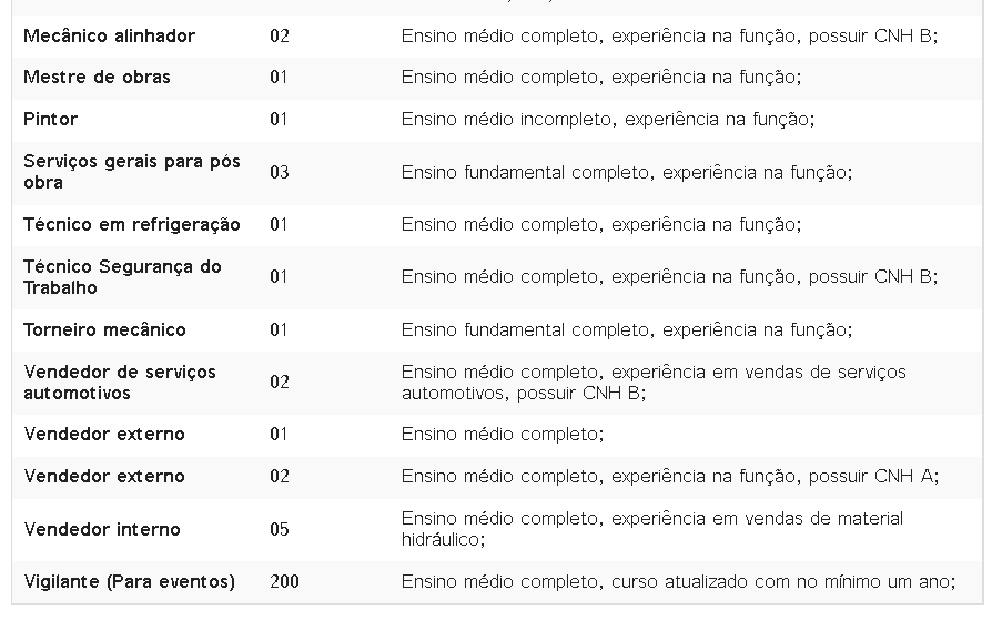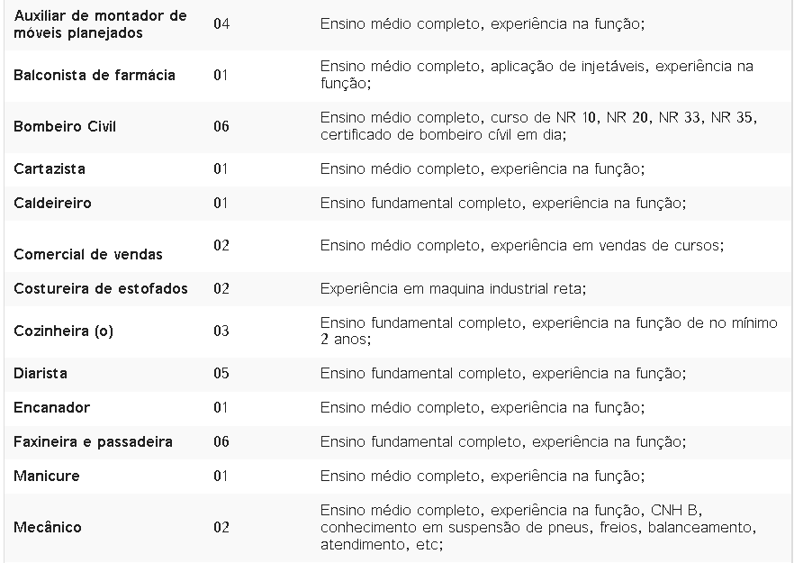 Confira abaixo as áreas de atuação, quantidade de vagas disponíveis e seus requisitos: