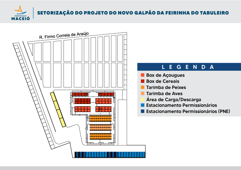 Como parte de um das melhorias realizadas pela Prefeitura de Maceió em todos os mercados da capital, esse novo espaço que ficará destinado para esses feirantes estará dividido em 2 setores, sendo cerca de 50 boxes e mais de 60 tarimbas disponíveis. Os permissionários de hortifruti também serão realocados para uma outra parte do mercado do Tabuleiro. Estima-se que cerca de 50 pessoas do ramo serão beneficiadas com a realocação.