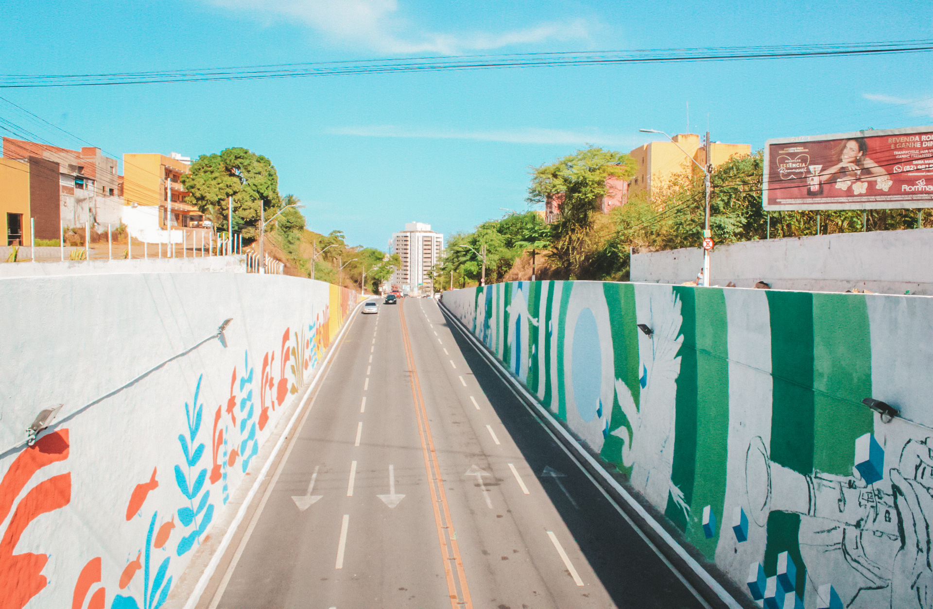 O viaduto União e Força, localizado no bairro do Jacintinho, vem ganhando nova roupagem com a execução do projeto ‘Mais Cor Maceió’, que propõe colorir e transformar espaços de convívio urbano em galerias de arte a céu aberto.