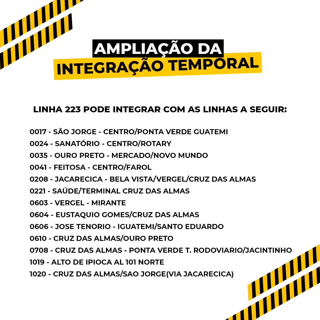 “Essa mudança também amplia as opções de destino final das pessoas através da integração temporal. Elas podem seguir para outras regiões como o Feitosa, para o Eustáquio Gomes ou para o bairro do José Tenório, por exemplo”, pontuou Paula Isanelle, diretora do Sistema Integrado da SMTT. “Não é só o destino para a Ponta Verde, mas dos destinos finais dos usuários”, finalizou.