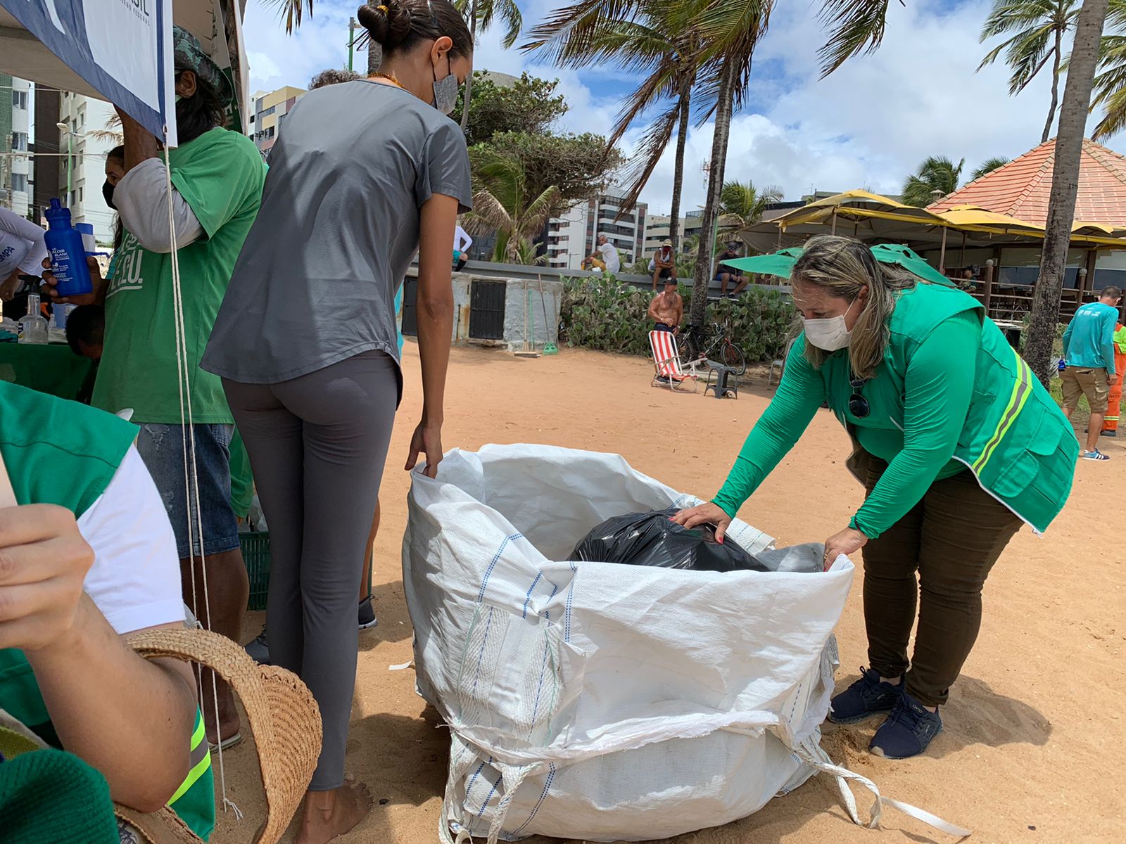 Ação uniu educação ambiental, instalação de papeleiras e entrega de bambonas para vendedores de coco