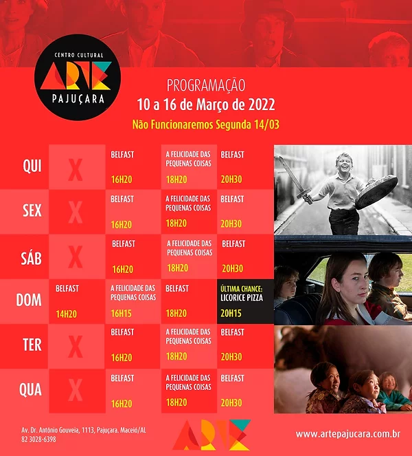 Programe-se! As estreias desta semana são os aguardados e indicados ao Oscar "Belfast" (6 categorias, incluindo Melhor Filme e Diretor) e "A Felicidade das Pequenas Coisas" (Melhor Filme Internacional). Além deles, teremos uma sessão última chance de "Licorice Pizza" para quem ainda não viu ou quer rever.