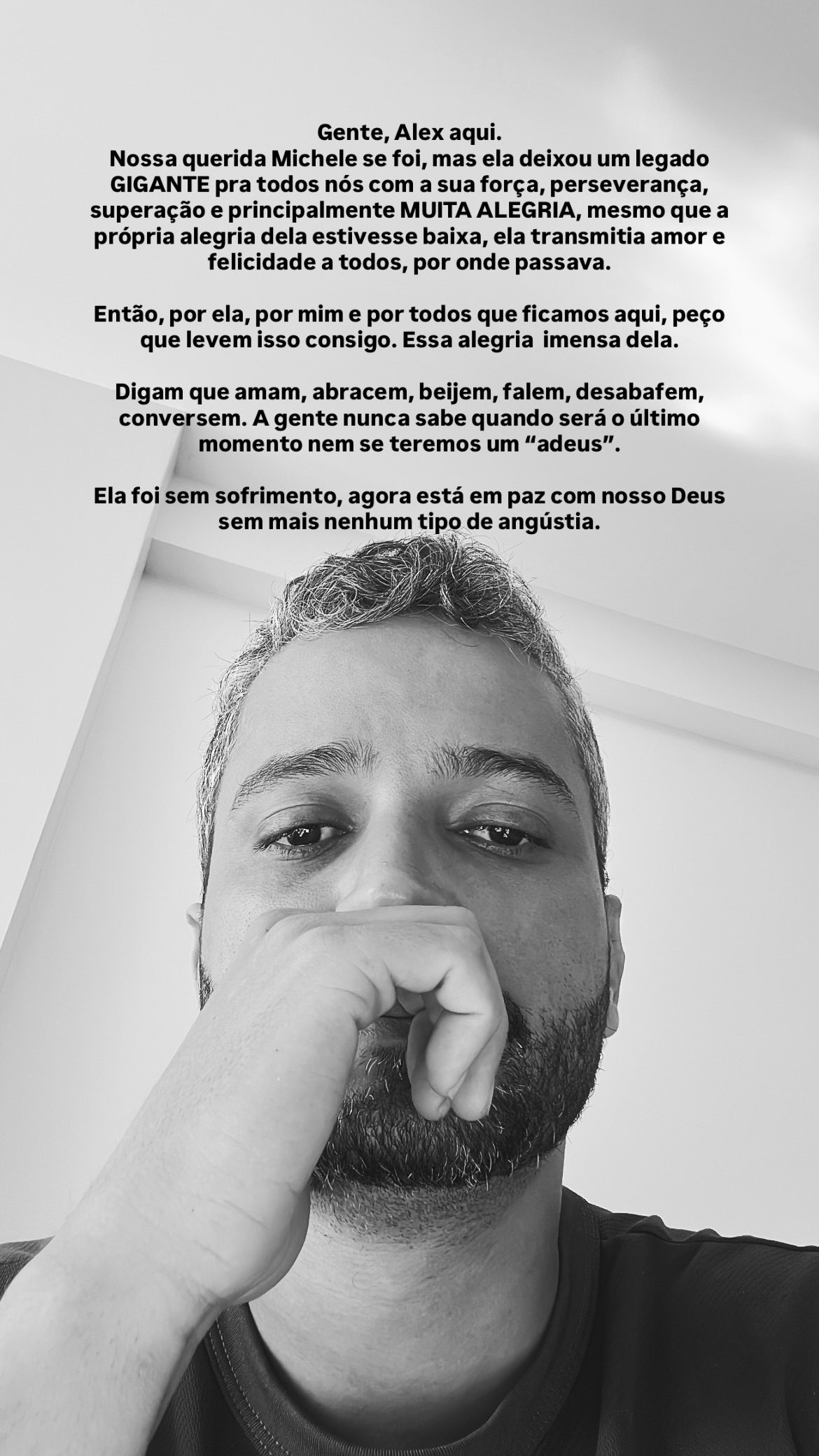 Em uma postagem recente, o esposo de Michele fez um desabafo emocionante e falou sobre o legado da influenciadora. "Então, por ela, por mim e por todos que ficamos aqui, peço que levem isso consigo. Essa alegria imensa dela", escreveu ele.