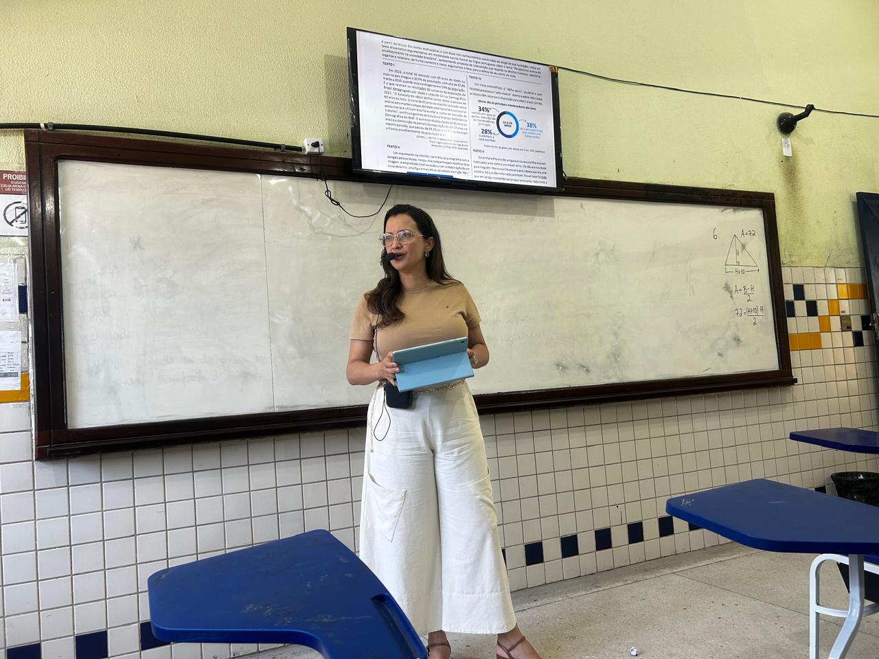 A professora reforça que a proximidade entre os temas debatidos em aula e a realidade dos alunos torna o processo de aprendizagem mais significativo.
