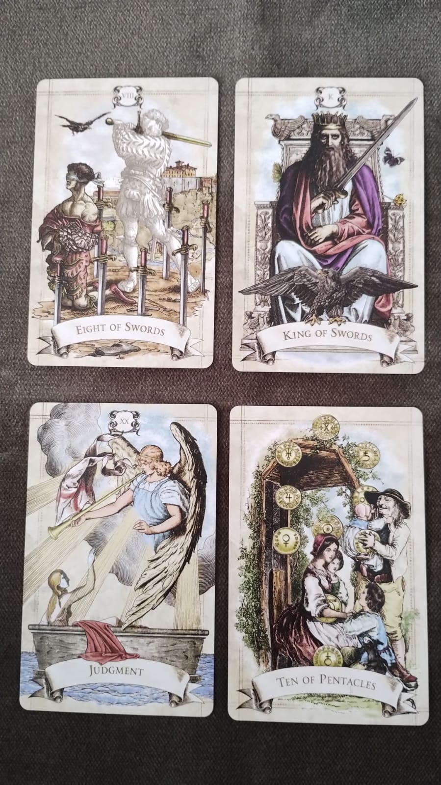 As cartas que saíram para o Brasil para falar sobre a questão de trabalho foram o 8 de espadas e o rei de espadas. Espada sempre é um naipe muito crítico, muito desafiador, porque ele vem lidar muito com o nosso mental. Então eu entendo que vai ser um ano bem difícil, um ano que vai trazer alguns obstáculos, e principalmente autossabotagem. As pessoas vão começar a acreditar que elas não