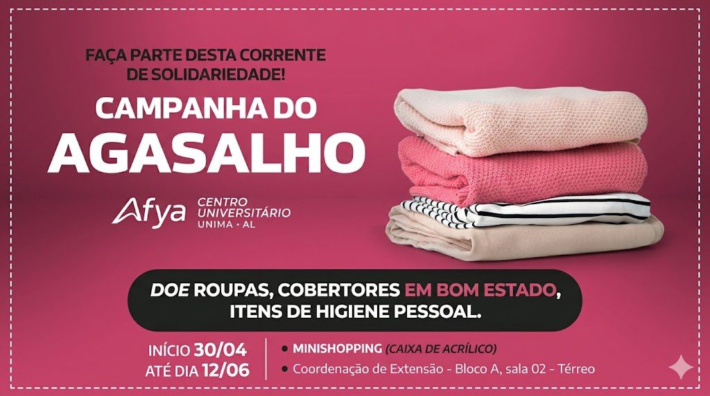 Com a chegada do período mais frio e chuvoso na capital alagoana, a Afya Maceió lança mais uma edição da tradicional Campanha do Agasalho, engajando alunos, colaboradores e sociedade para arrecadar roupas, cobertores e itens de higiene pessoal destinados a pessoas em situação de vulnerabilidade social. Neste ano, a iniciativa deve beneficiar especialmente idosos acolhidos em instituições de longa permanência, um público sensível às baixas temperaturas, recebendo doações a partir do dia 30 de abril.