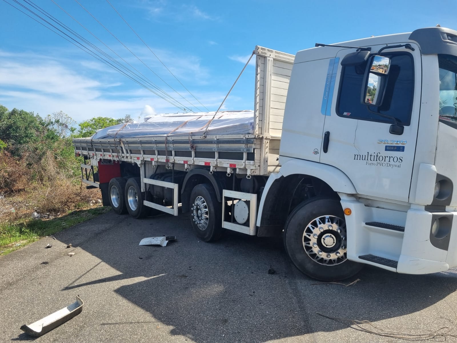 O caminhão pertence a uma empresa que fornece forros PVC para o Nordeste. No momento do acidente, o veículo transportava o material, que ficou intacto.