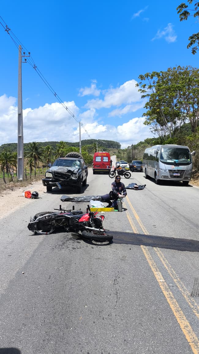 Segundo a corporação, o homem, que conduzia a moto, também morreu no local.