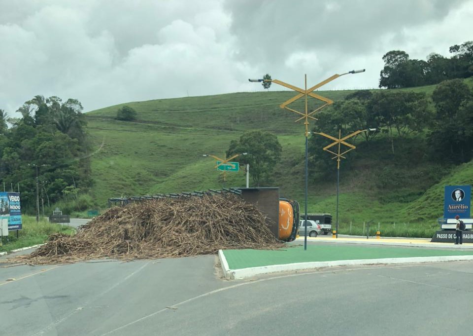 Nesta quinta-feira (12), um caminhão que transportava uma carga de cana-de-açúcar tombou no encontro entre as rodovias AL-105 e AL-430, próximo ao trevo que dá acesso ao município de Passo de Camaragibe, no interior de Alagoas.