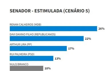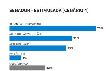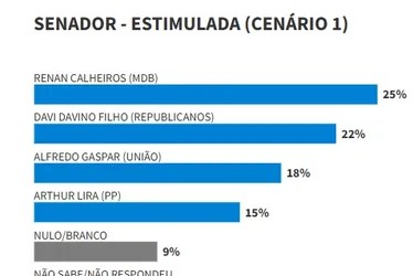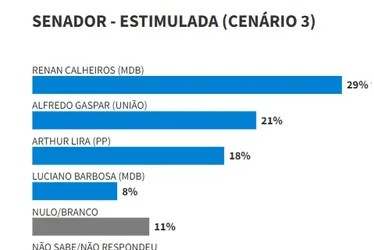 A sondagem simulou diferentes cenários para a disputa pelas duas vagas de Alagoas no Senado. Foram entrevistadas 1.200 pessoas, entre os dias 22 e 23 de setembro. A margem de erro é de três pontos percentuais, para mais ou para menos. O nível de confiança é de 95%. Veja os resultados: