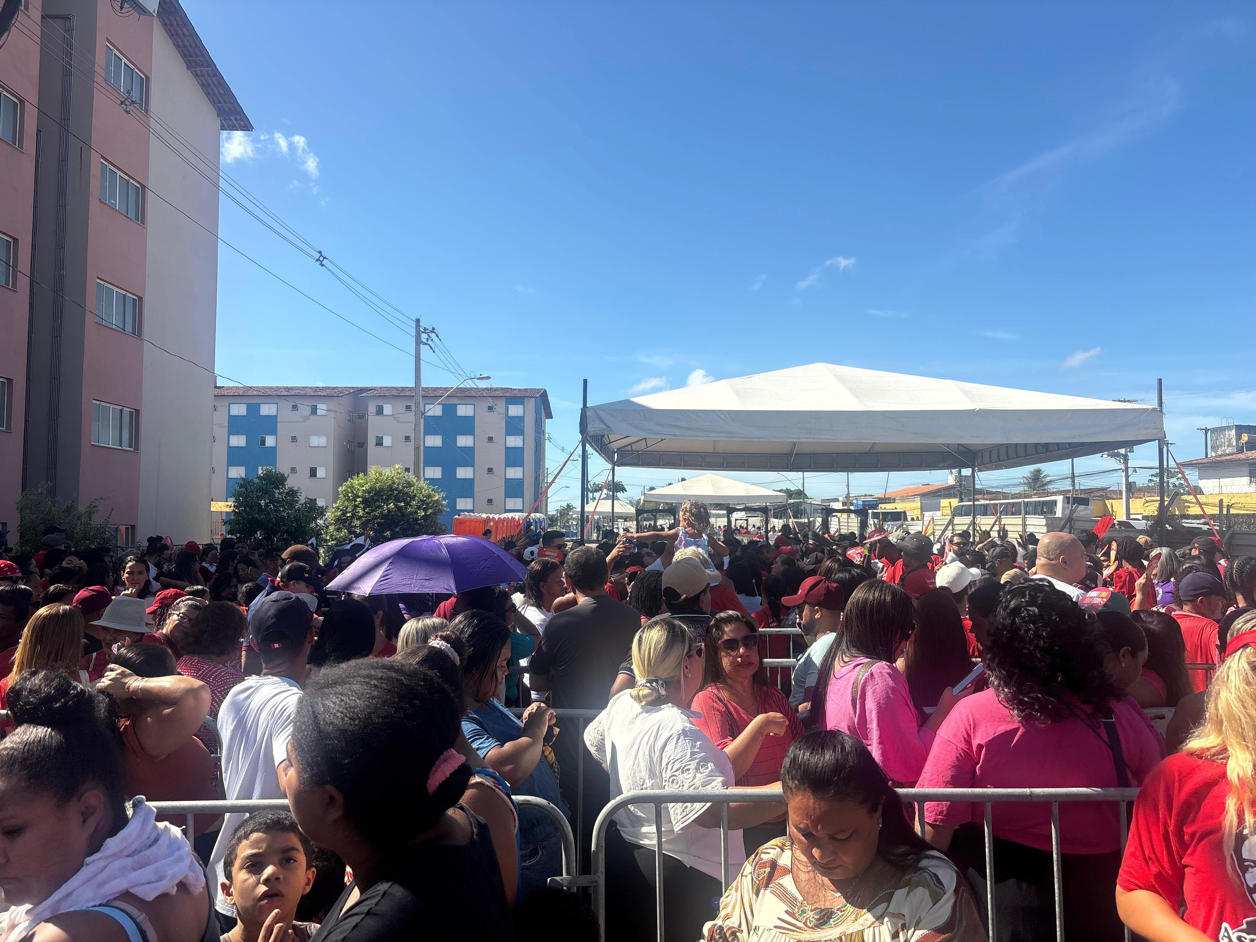 O bairro Santa Amélia, em Maceió, começou a receber uma grande quantidade de público para ver o presidente Lula nesta sexta-feira (23). A estimativa é de 3 mil pessoas, sendo 2 mil vagas reservadas para moradores e mil vagas para o público geral.