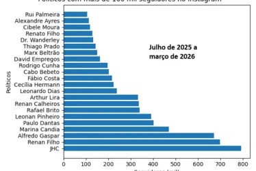 O levantamento mostra que 22 políticos de Alagoas já ultrapassam a marca de 100 mil seguidores no Instagram, formando um grupo com presença digital consolidada e potencial de influência direta no debate público.